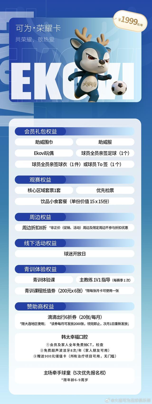 yl23455永利官网-大连可为上线官方小程序并招募球迷会员,最高价1999/年
