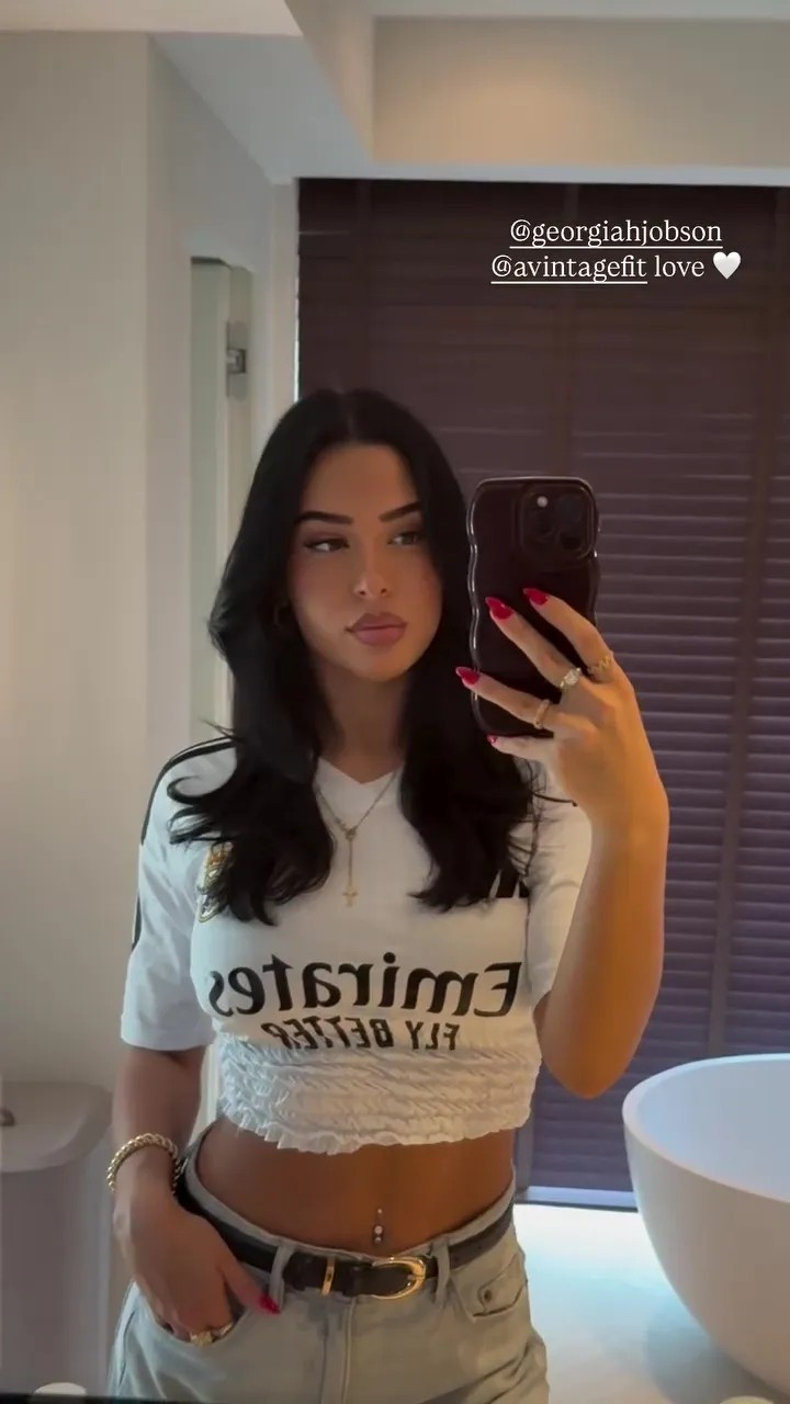 这位27岁的社交媒体明星与皇马及英格兰中场贝林厄姆相恋数月,但两人始终将恋情保持低调。作为拥有超60万粉丝的网红模特,艾琳常通过Ins分享其精致生活。在最新发布的镜前自拍中,她身着修身长裤与背心,对镜头眨眼浅笑。